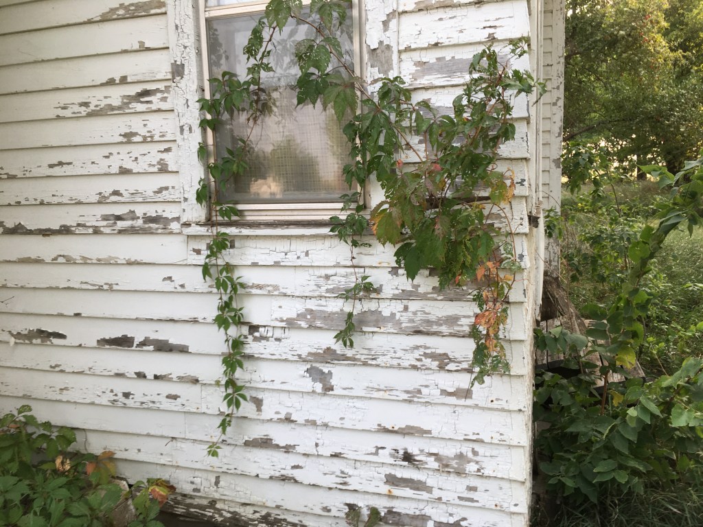 The vine in these photos somehow came up behind the siding on the Greats’ House and then emerged to grow and entwine in a more familiar way. Consequently, it looks like it grew right out of the wall of the porch on the southwest corner of the house. You can tell by all of the green that this picture was taken earlier in the year. Nature will not be denied.