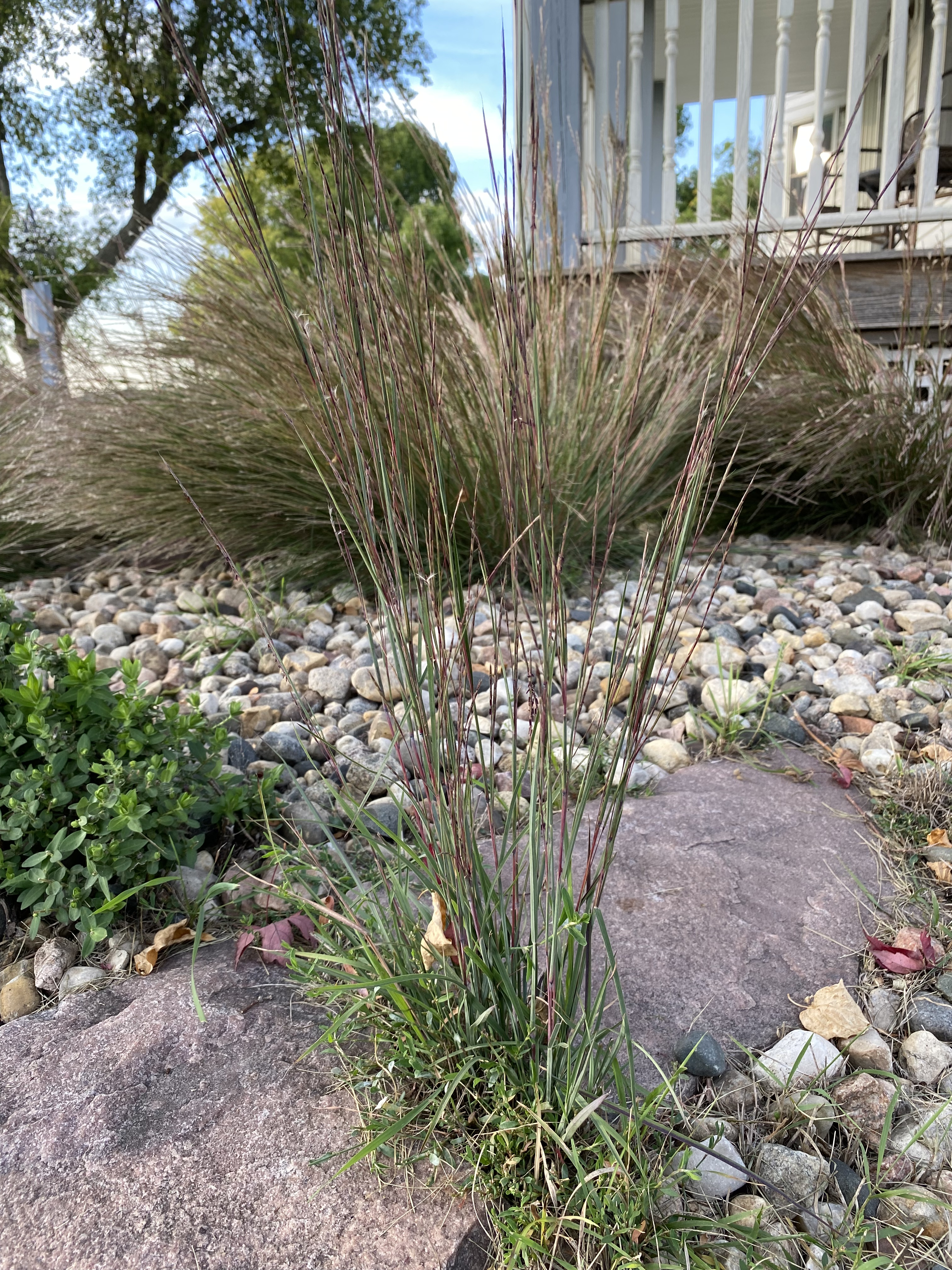 The area of big bluestem located just to the house of our house also did not do well this year. We had hoped that the stand of native grass would grow larger, but again the brome was a successful competitor and limited expansion. On the other hand, the little bluestem that’s part of the landscaping right next to the house did very well. It even expanded out into the area between the rocks that are located back away from the bunches of grass that we planted.