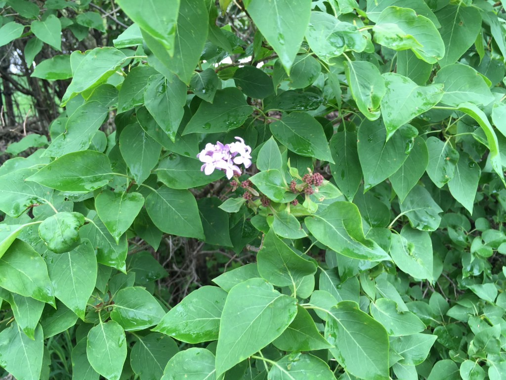 Not all of the lilac bushes have purple blossoms. There’s one that’s all white and it seems to be in pretty good shape this year. However, another cluster barely has any flowers at all. This small, lonely “bouquet” is surrounded by some leaves that seem to be curled. It looks like something isn’t right in this clump.